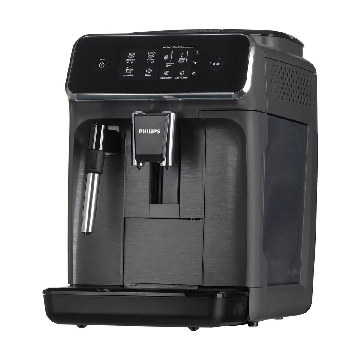 Die Philips Series 2200 EP2224/10 Espressomaschine ist ein vollautomatisches Gerät, das eine effiziente und einfache Zubereitung von Kaffee in Profiqualität zu Hause oder im Büro ermöglicht. Dieses Modell besticht durch seine Kapazität von 1,8 Litern, ideal für mehrere Tassen ohne ständiges Nachfüllen, ergänzt durch eine Leistung von 1500 W, die schnelles Aufheizen und optimale Kaffeeextraktion gewährleistet. Es verfügt über einen maximalen Betriebsdruck von 15 bar, ein entscheidender Faktor für dichten Crema und ausgewogenen Geschmack in jeder Tasse. Das Design in Schwarz, Grau und Anthrazit verleiht einen schlichten, modernen Look und fügt sich leicht in verschiedene Küchenstile ein. Die Maschine erlaubt die Nutzung von Tassen bis zu 15 cm Höhe, was die Zubereitung verschiedener Kaffeesorten und gängiger Gefäße erleichtert. Zudem ist eine herausnehmbare Tropfschale integriert, die Reinigung und Pflege vereinfacht und so Hygiene und Komfort im Alltag verbessert. Obwohl es sich um eine vollautomatische Maschine handelt, verfügt sie nicht über ein automatisches Cappuccino-System und ist daher hauptsächlich für Espresso und klassischen Kaffee ausgelegt. Insgesamt bietet die Philips EP2224/10 eine ausgewogene Kombination aus Leistung, Kapazität und Bedienkomfort und ist eine vielseitige, zuverlässige Wahl für alle, die eine effiziente Espressomaschine suchen.