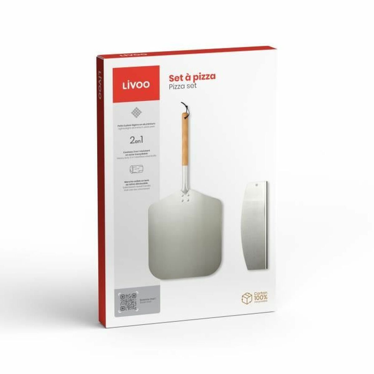 Das Set des Livoo Pizzaschneiders umfasst zwei wesentliche Teile, die Funktionalität und Design verbinden, um die Zubereitung und das Servieren von Pizza zu erleichtern. Besonders hervorzuheben ist der Griff aus Buchenholz, der einen bequemen, natürlichen und ergonomischen Halt bietet, während die aktiven Teile aus hochwertigen Materialien gefertigt sind: eine Schaufel aus leichtem und robustem Aluminium sowie ein Schneidemesser aus langlebigem und effektivem Edelstahl, das präzises Schneiden jeder Pizzasorte ermöglicht, ohne den Boden zu beschädigen. Das Set besticht durch eine gepflegte Optik dank der Kombination aus brauner Holzfarbe und silbernen Metallteilen, die beim Servieren einen klassischen und eleganten Akzent setzen. Die Schaufel eignet sich ideal zum Verschieben der geschnittenen Stücke, während das Messer mit seiner scharfen und robusten Klinge einen sauberen und gleichmäßigen Schnitt garantiert, was den Vorgang sowohl zu Hause als auch in professionellen Umgebungen mit anspruchsvoller Präsentation erleichtert. Zudem sorgt das minimalistische Design und die Materialzusammensetzung für gute Hygiene und einfache Reinigung nach Gebrauch. Dieses 2-teilige Livoo-Set richtet sich an Nutzer, die praktische und langlebige Küchenwerkzeuge schätzen, und vereint Tradition und Funktionalität in einem speziellen Pizzawerkzeug. Insgesamt bietet dieses Set eine komplette Lösung, um Pizza bequem und stilvoll zu genießen und zu teilen.