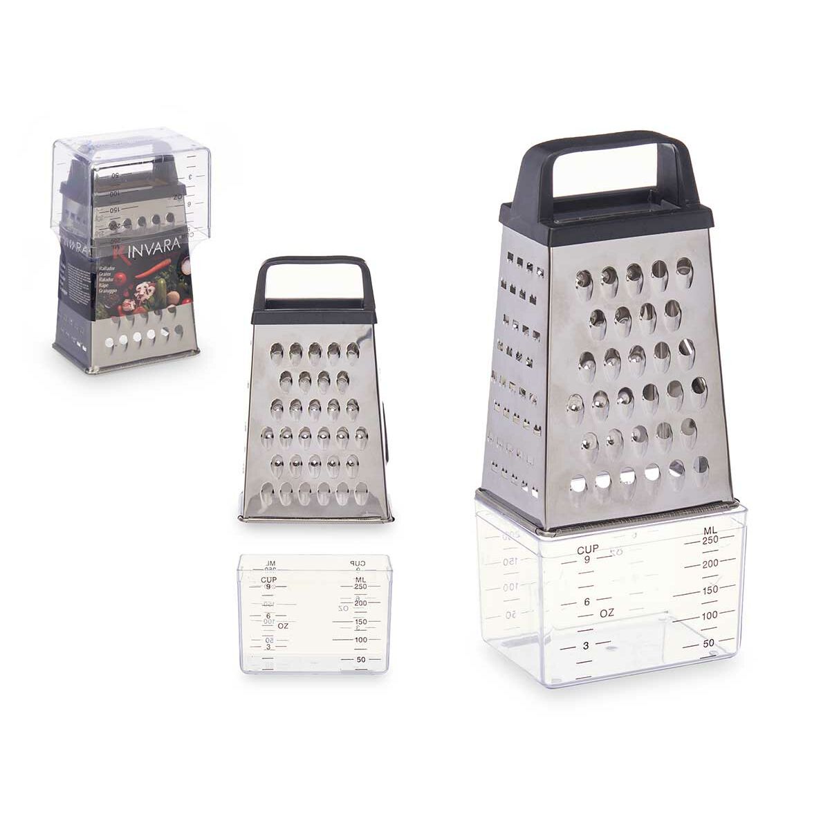 Wenn Sie bei der Einrichtung ihres Heims Wert auf Details legen und bei Produkten, die Ihnen das Leben leichter machen, auf dem letzten Stand sein möchten, dann kaufen Sie Reibe mit Auffangbehälter Kinvara Durchsichtig Silberfarben Edelstahl Polypropylen polystyrol 9 x 6,7 x 20,5 cm (12 Stück) zum besten Preis.