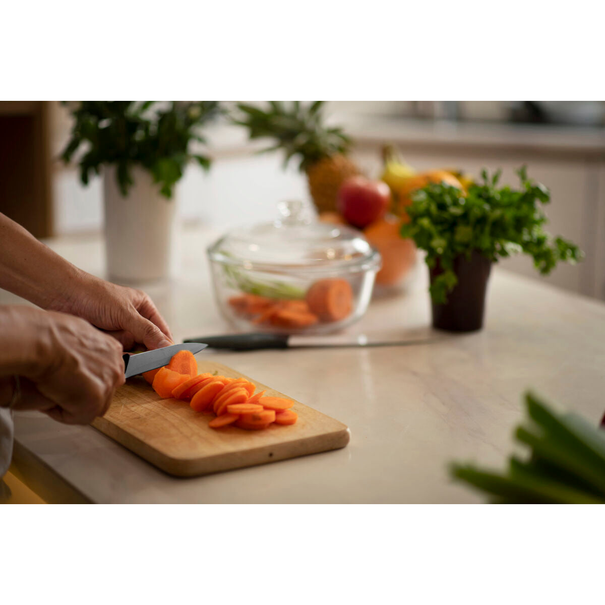 - Waschanleitung: Damit die ursprüngliche Qualität des Griffes und der Klinge erhalten bleibt, empfehlen wir, diese nicht in der Geschirrspülmaschine zu reinigen.
