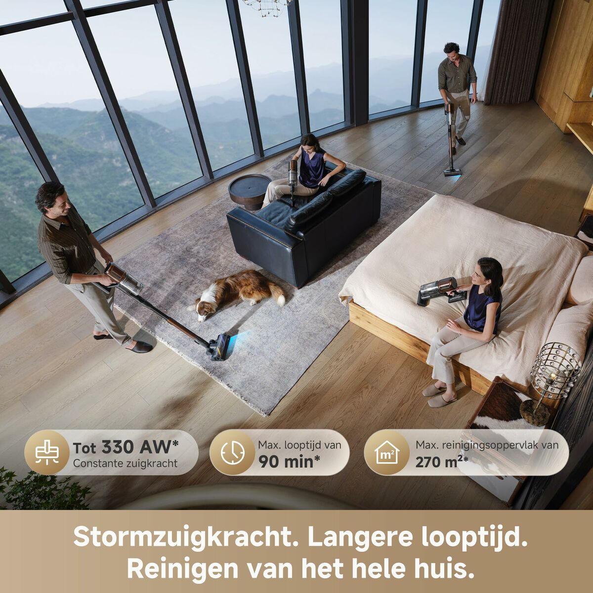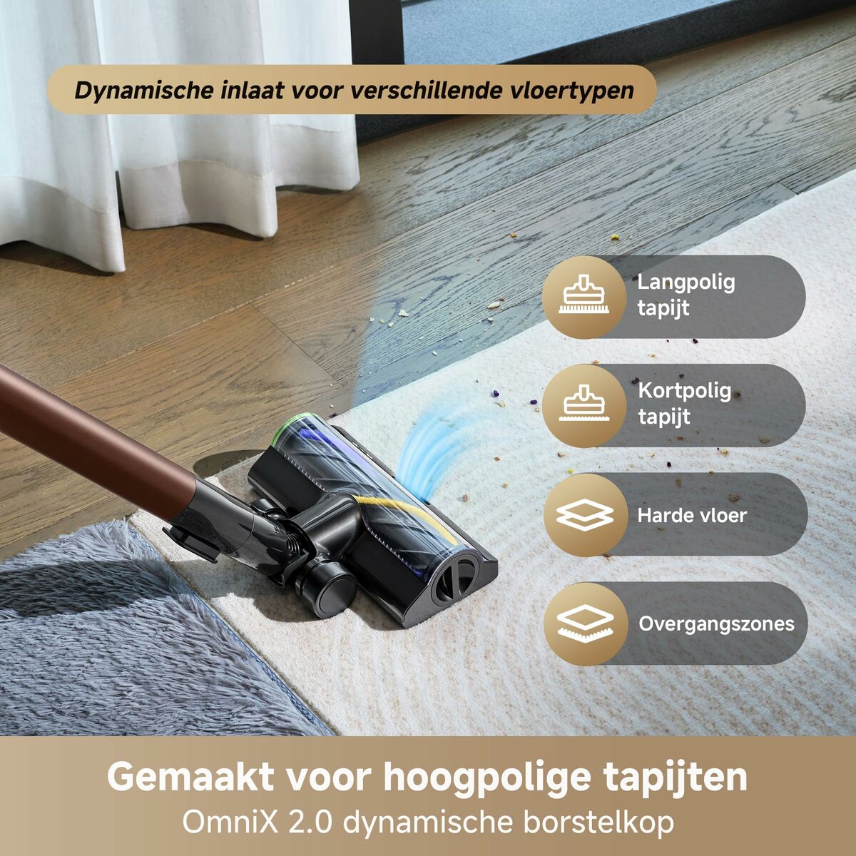 Der Aspirador Dreame V30 ist ein kabelloses Gerät, das durch seine fortschrittliche Technologie und vielseitiges Design besticht – ideal für eine gründliche und unkomplizierte Reinigung zu Hause. Er verfügt über ein RoboArm GapFree™-System, das von künstlicher Intelligenz gesteuert wird und perfekten Kontakt zu Kanten herstellt, um präzise Reinigung ohne tote Winkel zu gewährleisten. Ein Roboterarm passt die Bürste automatisch an, um Staub entlang der Wände zu versiegeln und zu entfernen. Die OmniX™ 2.0 rotierende Bürste ist speziell für Langflor-Teppiche und harte Böden entwickelt, da sie die Öffnung dynamisch anpasst, um einen optimalen Luftstrom zu erhalten und Verstopfungen zu vermeiden. Zudem ist die innovative TangleCut™-Technologie mit doppelten Schabern integriert, die Haare beim Saugen schneiden, Verwicklungen minimieren und den manuellen Wartungsaufwand des Walzens reduzieren. Dieser Staubsauger besitzt einen HEPA-Filter, der die Luftqualität während der Reinigung verbessert, indem er feine Partikel und Allergene zurückhält. Das 90° klappbare und vierstufig ausziehbare Design ermöglicht das Erreichen schwer zugänglicher Stellen und erleichtert die Reinigung niedriger Bereiche. Die doppelte Farboption in Braun und Schwarz sorgt für eine gepflegte und dezente Optik. Die konstante Saugleistung von 330 AW garantiert eine effiziente und gründliche Reinigung ohne Leistungsverlust. Außerdem ist das Gerät wiederaufladbar und bietet kabellose Bewegungsfreiheit, was die Nutzererfahrung in allen Wohnbereichen optimiert. Insgesamt vereint der Dreame V30 technologische Innovation, Ergonomie und erweiterte Funktionalität für eine präzise und anpassungsfähige Reinigung in jedem Haushalt.