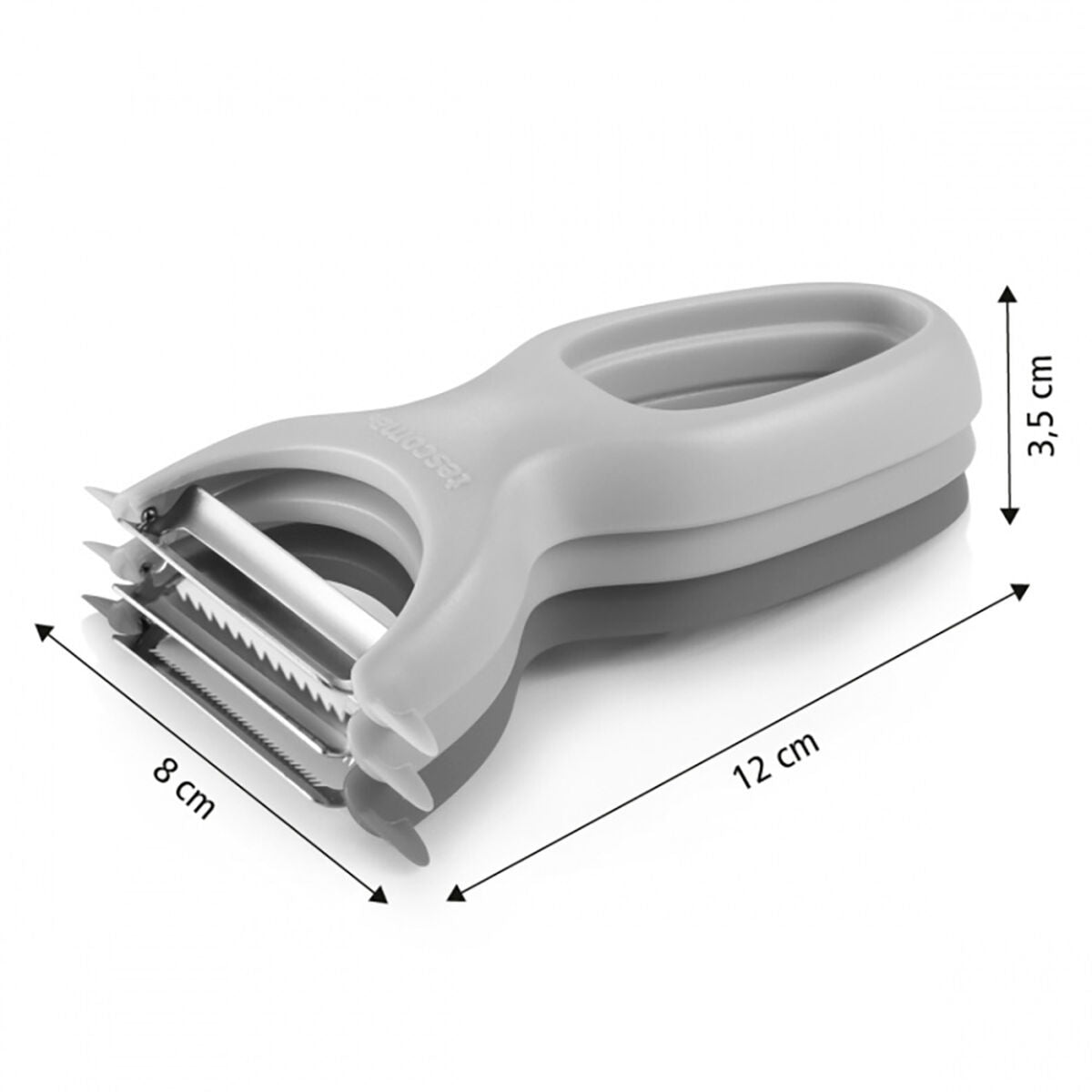 Das Tescoma Presto Expert Schäler-Set wurde entwickelt, um die Zubereitung von Obst und Gemüse mit hoher Funktionalität und Langlebigkeit zu erleichtern. Dieses Set enthält 3 verschiedene Einheiten, die unterschiedliche Schäle- und Schneidetechniken abdecken: eine gerade Klinge für klassisches und präzises Schälen, eine gezahnte Klinge, die für Lebensmittel mit härterer Schale oder unregelmäßigen Oberflächen geeignet ist, sowie eine spezielle Klinge zum Schneiden in Julienne, ideal für dünne und gleichmäßige Gemüsestreifen. Die Klingen bestehen aus hochwertigem Edelstahl, der Verschleißfestigkeit und effizientes Schneiden über lange Zeit garantiert. Die Schäler sind kompakt und ergonomisch gestaltet und können zusammengefügt und platzsparend verstaut werden, was die Aufbewahrung und den Zugriff erleichtert. Das praktische Design bietet zudem den Vorteil, dass sie vollständig spülmaschinengeeignet sind, was Reinigung und Pflege unkompliziert macht. Dieses Schäler-Set ist eine vielseitige und robuste Lösung für Haushalte oder Profis, die zuverlässige Werkzeuge für das tägliche Schneiden von Obst und Gemüse suchen. Zusammengefasst vereint das Tescoma Presto Expert Set Funktionalität, Qualität und Komfort in einem kompakten Produkt, das die Arbeit in der Küche optimiert.